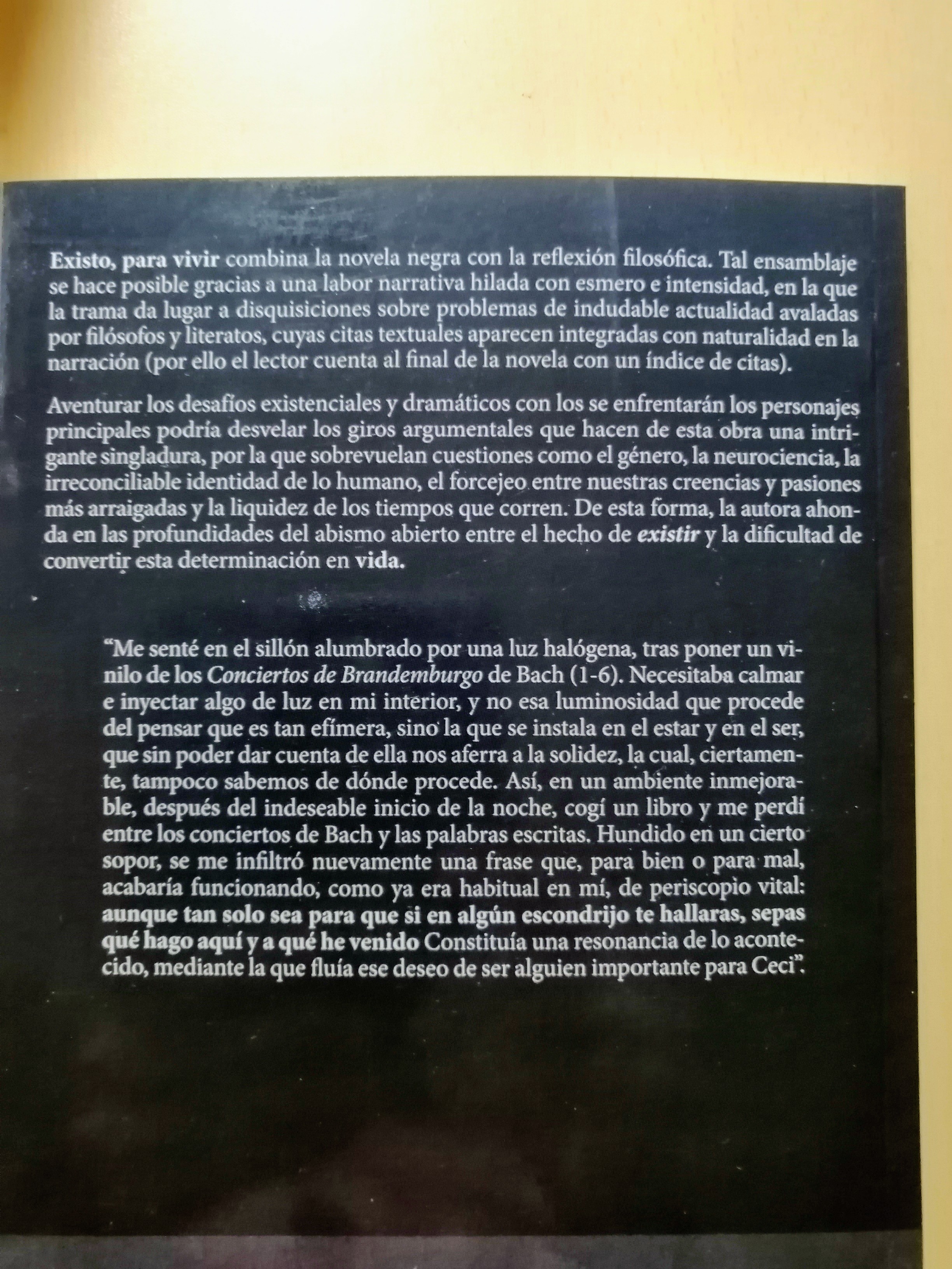 No vivo porque existo, sino que existo porque vivo. La Vida es de una dignidad superior a la propia existencia. Pero se encuentra amenazada por graves dicotomías de nuestro tiempo. Esa parece ser la conclusión de la presente novela.