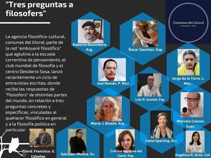 Responde al ciclo «tres preguntas a filosofers» Ana Lacalle. Licenciada en filosofía por la Universidad de Barcelona, autora de “Híbrido” Ed. Adarve, 2018; “Relatos y Aforismos” Célebre Editorial, 2019; “Existo, para vivir” Terra Ignota Ediciones y “El mal que nos hacemos” Terra Ignota, 2022. Secretaria académica del centro de estudios políticos, sociales y filosóficos «Desiderio Sosa». Miembro fundacional del «Club Mundial de Filosofía» e integrante del consejo de redacción de la revista de filosofía, humanidades y coso «Angaú».