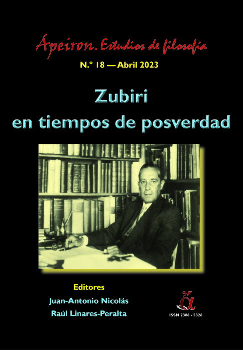 – N.º 18 de Ápeiron Ediciones Monográfico «Zubiri en tiempos de posverdad» https://www.apeironestudiosdefilosofia.com/n%C3%BAmero-18 Editores: Juan Antonio Nicolás y Raúl Linares-Peralta Índice Presentación. Zubiri en tiempos de posverdad Juan Antonio Nicolás…See More