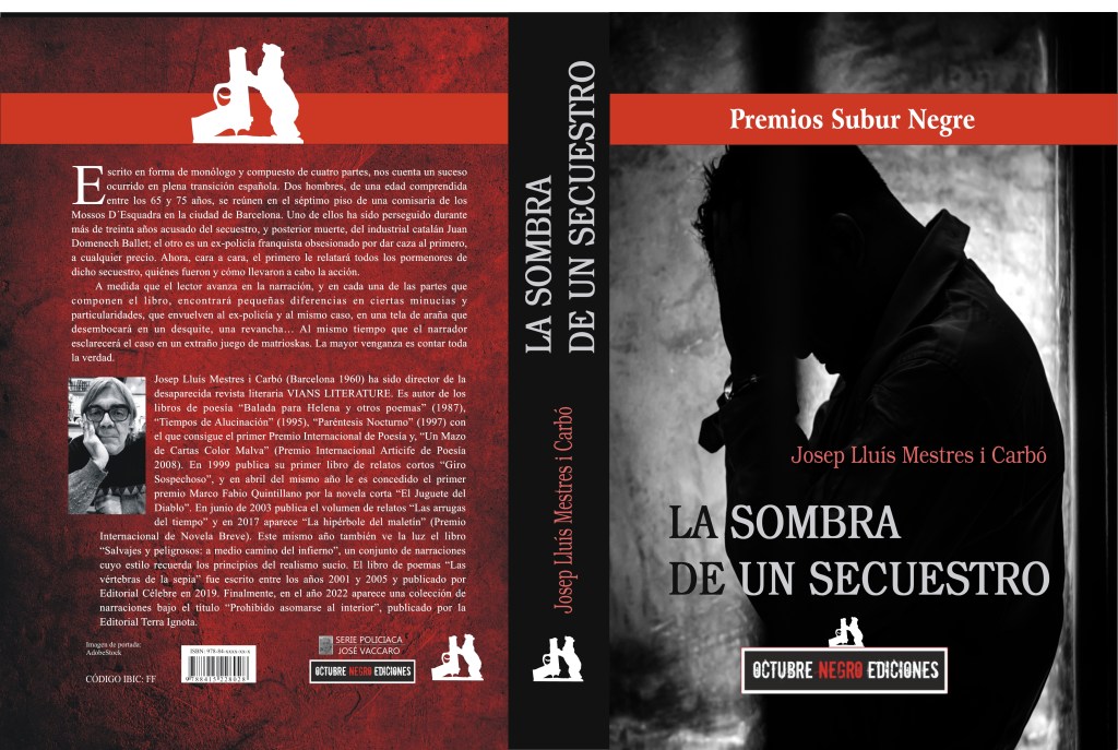 El Próximo día 23 de enero a las 19h. en el Café de la Ópera de Barcelona, tendrá lugar la presentación de la novela del escritor Josep Lluís Mestres, La sombra de un secuestro. Habiendo leído las últimas obras, en prosa poética, del autor, me atrevería a apostar que será una novela de gran calado. La novela forma parte de los premios SUBUR NEGRE, aumentando así la retahíla de premios con los que ha sido galardonado Josep Lluís Mestres. La editorial OCTUBRENEGROEDICIONES es la encargada de poner a disposición de los lectores esta última obra de un escritor polifacético que desliza sin dificultad entre la narrativa, la poesía y es, además, crítico de cine.