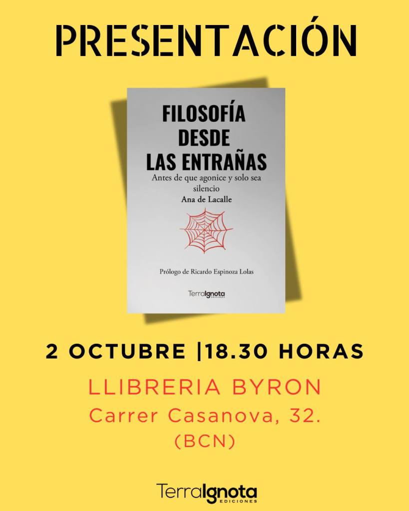 Te invitamos a la presentación de FILOSOFÍA DE LAS ENTRAÑAS de Ana de Lacalle, 𝐞𝐥 𝐦𝐞𝐣𝐨𝐫 𝐥𝐚𝐧𝐳𝐚𝐦𝐢𝐞𝐧𝐭𝐨 𝐟𝐢𝐥𝐨𝐬𝐨́𝐟𝐢𝐜𝐨 𝐝𝐞𝐥 𝐚𝐧̃𝐨. Una reflexión visceral sobre la vida y el ser, que no dejará indiferente a nadie. Con la presencia de la autora y el filósofo 𝐑𝐢𝐜𝐚𝐫𝐝𝐨 𝐄𝐬𝐩𝐢𝐧𝐨𝐳𝐚, prologuista del libro. ¡No faltes! ![]()