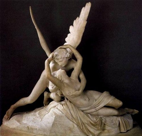 Psique reanimada por el beso del amor, también llamada El amor de Psique o El beso, es un grupo escultórico de mármol blanco realizado a finales del siglo XVIII por el artista italiano Antonio Canova Mientras uno se debate entre ser o no ser, otros dejan de ser por voluntad ajena. Seguramente, estos últimos no