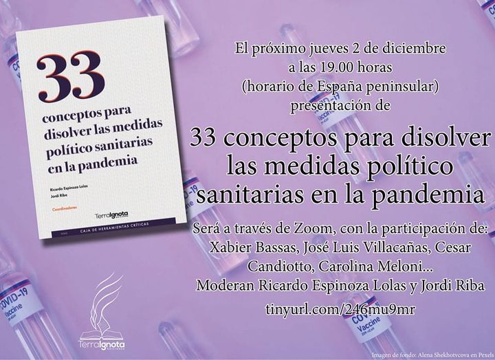 Ayer tuve el placer de asistir a la presentación de la obra colectiva “33 conceptos para disolver las medidas político-sanitarias en la pandemia” Terra Ignota Ediciones, coordinada por Ricardo Espinoza Lolas y Jordi Riba. En la introducción, a cargo de Jordi Riba, se destacó la obra como una caja de herramientas —en el sentido foucaultiano—