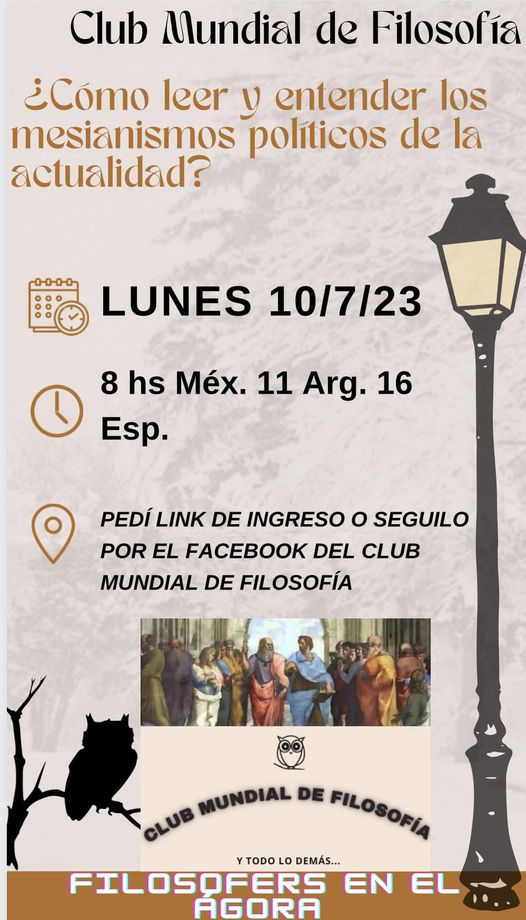 CONVERSATORIO: La idea es charlar sobre las diferentes interpretaciones en torno a categorías como populismo, autoritarismo, y democracia. Podemos partir, aunque no es estrictamente necesario, de la categoría de «mesianismo» dentro de filosofía de Walter Benjamin, o de la filosofía de la liberación a partir de Enrique Dussel. O bien, desde una perspectiva más sociológica,